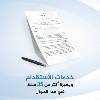 الاستقدام / هو التعامل مع جميع الدول الخارجية لجلب العمالة المدربة الفنية والعامة والمنزلية ويتميز مكتبنا في جلب عمالة على اعلى مستوي من الخدمة التي ترضي العملاء الكرام بداية من سرعة التنفيذ والتقيد بالشروط والمواصفات قدر المستطاع لتلبية احتياجات سوق العمل السعودي كما نقدم العمالة بصورة أسهل ونظامية